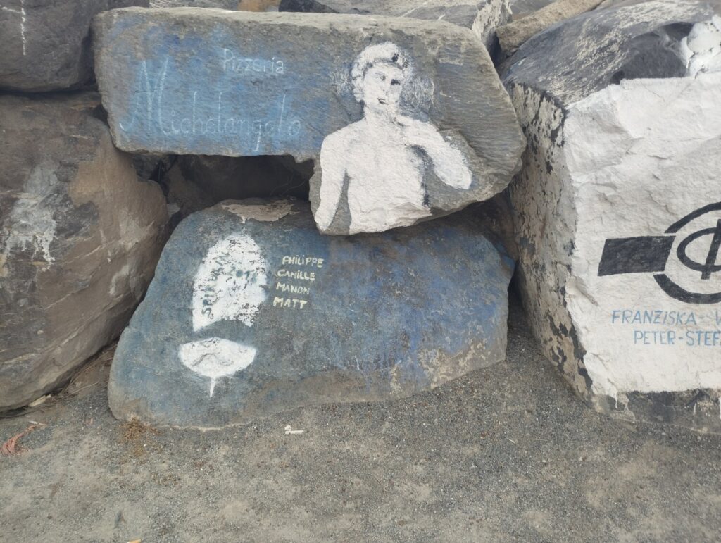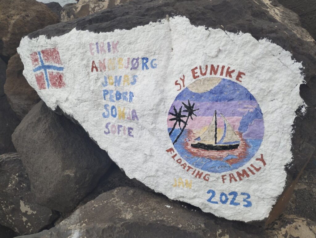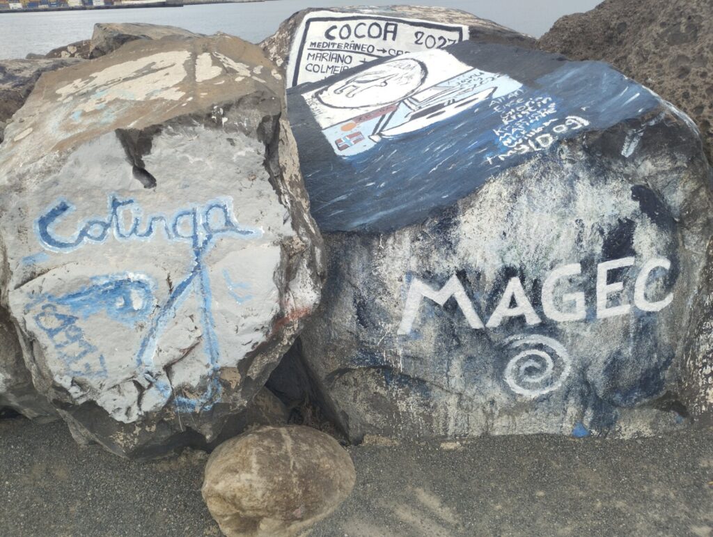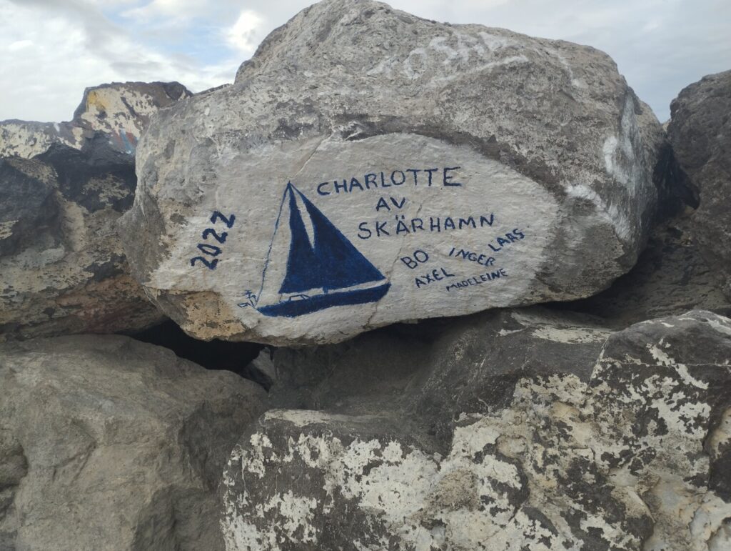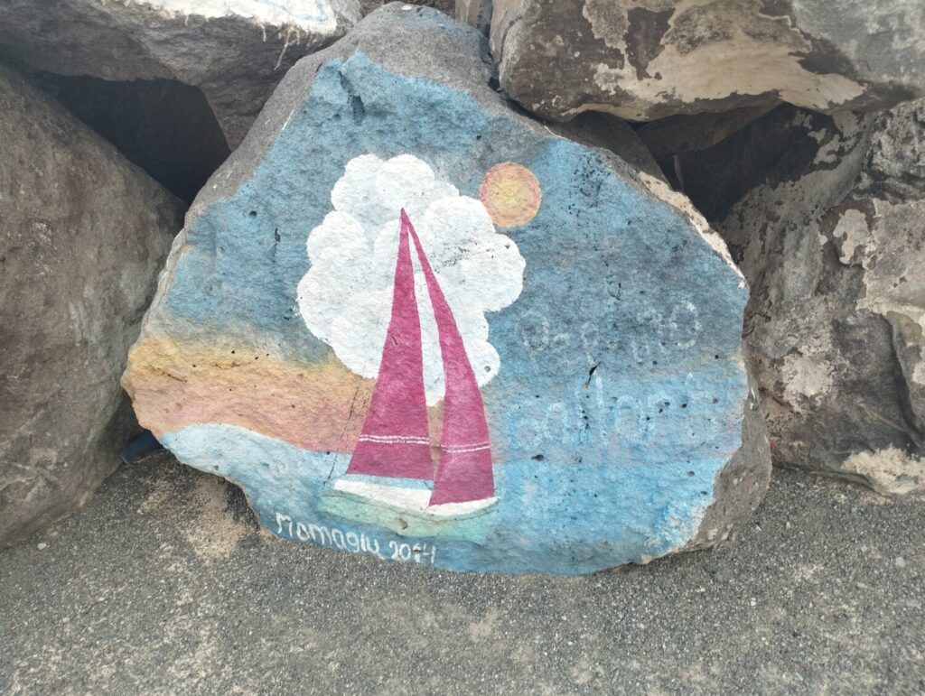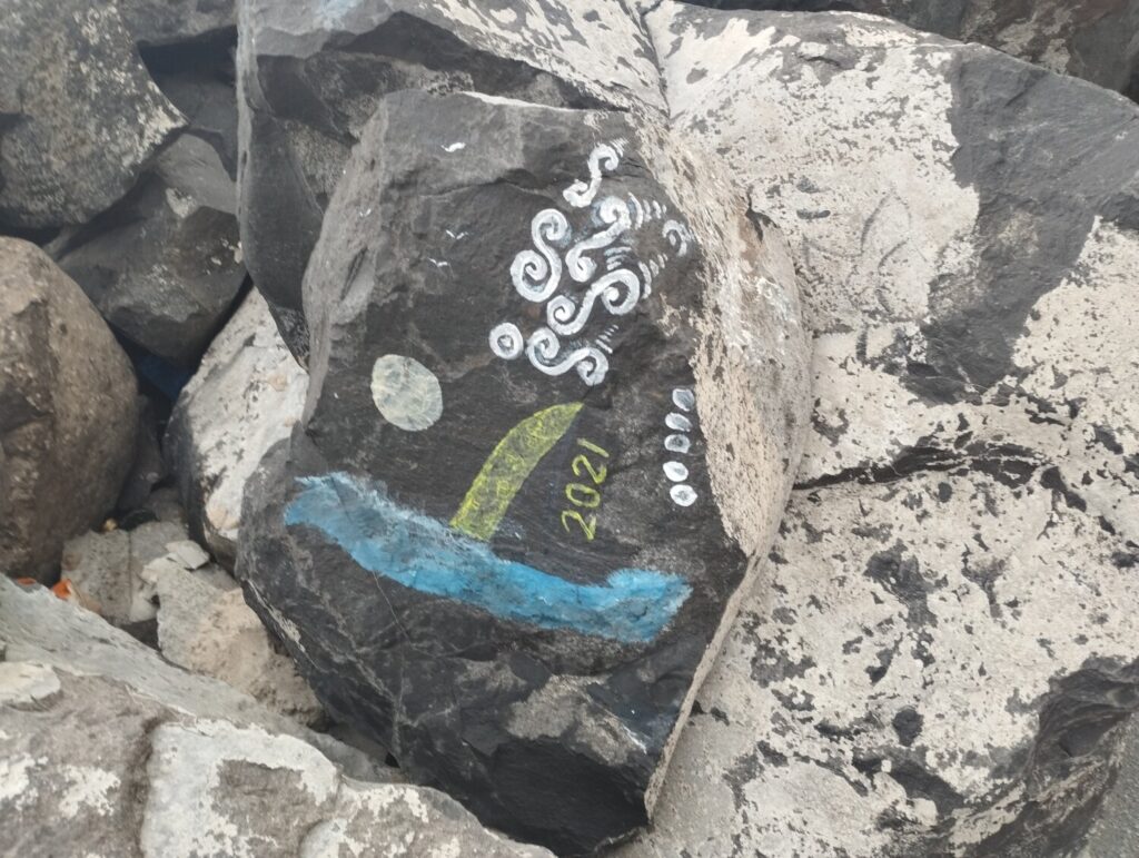 Un año tras otro, estos ‘artistas del océano’ pintan banderas de sus países, nombres de embarcaciones, fechas y dibujos de todo tipo, la mayoría con motivos marineros. Las rocas llevan pinturas de rincones lejanos y cercanos, pero con un denominador común: todos los colores y símbolos quedan plasmados bajo el sol de Canarias, convirtiendo cada piedra en una obra particular.