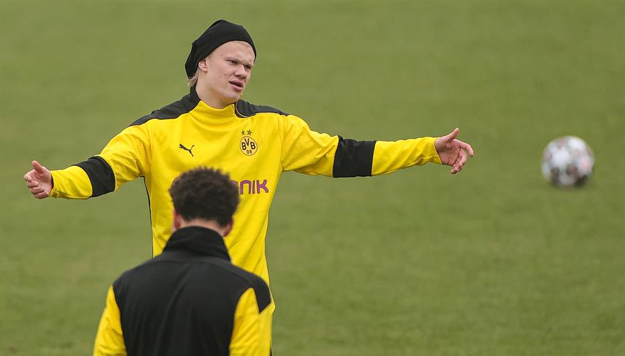 Haaland, que fue sustituido contra el Bayern con un golpe en el talón, podrá estar este martes en el campo según el entrenador Edin Terzic y también estuvo en este entrenamiento de la previa.