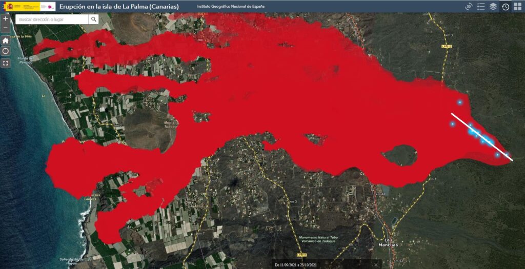 La red de estaciones permanentes GNSS de La Palma muestra una elevación de más de 10 cm con respecto a ayer y deformación hacia el sur en la estación LP03, que es la más cercana a los centros eruptivos