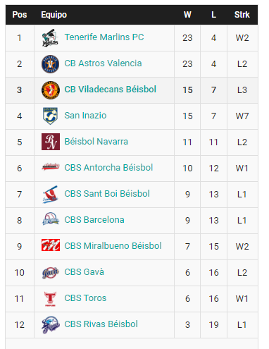Los tinerfeños, tras ganar los dos juegos, se mantienen primeros del grupo A, con 21 encuentros ganados y una sola derrota. Del otro lado, el Béisbol Navarra queda tercero, con 12 triunfos y 12 derrotas, cuando aún restan dos jornadas para terminar la Liga regular.