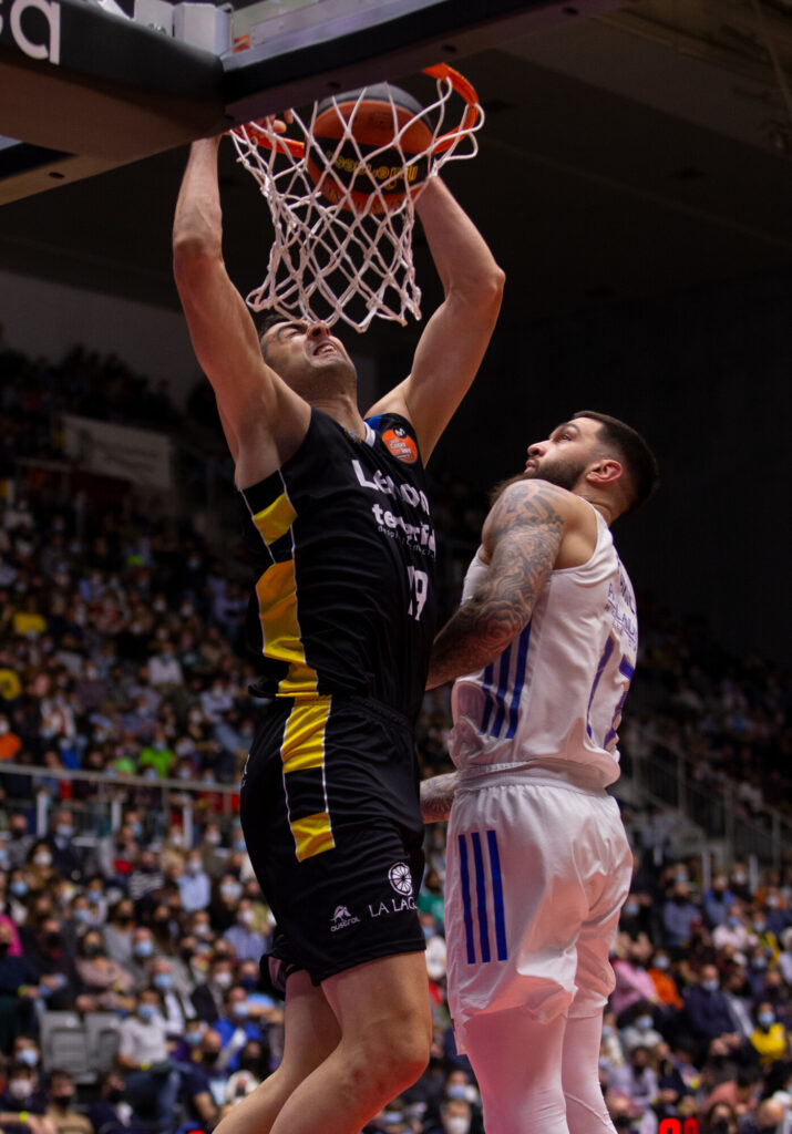 Tras la primera pausa, Trey Thompkins también exhibió buena muñeca. Suyos fueron los ocho primeros puntos de su equipo tras imponerse cerca del aro a Kyle Wiltjer, al que también tenía bajo control en la pintura. Los minutos pasaban y el Tenerife seguía sin encontrarse, jugando de forma intermitente y a tirones, echando de menos la aportación hasta ese momento de Huertas y Shermadini y la ausencia del lesionado Bruno Fitipaldo.