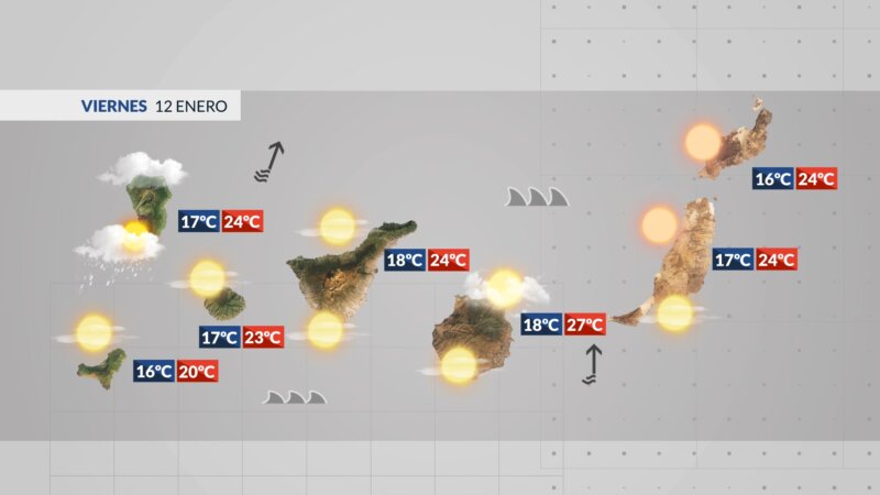 Las temperaturas mínimas subirán ligeramente, pero lo harán de forma moderada en el oeste y sureste de las islas orientales. Las máximas bajarán en las más occidentales y nordeste de Tenerife.