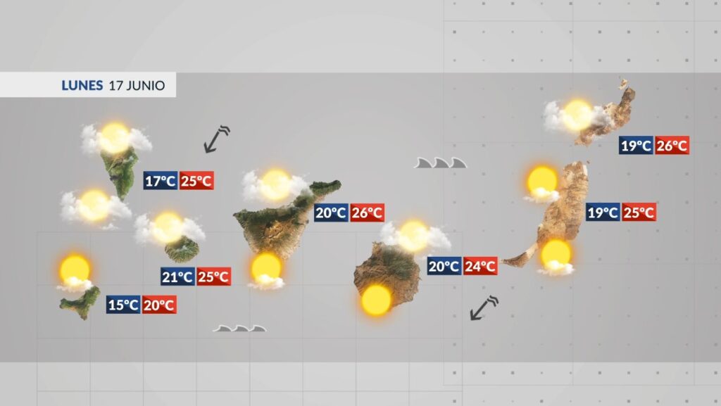 Este lunes seguiremos viendo nubes bajas en el norte de las islas. Estas serán más compactas a primeras y últimas horas. Se podrá disfrutar del sol en varios puntos, sobre todo a mediodía. Se espera que pueda caer algunas gotas a lo largo de la semana.