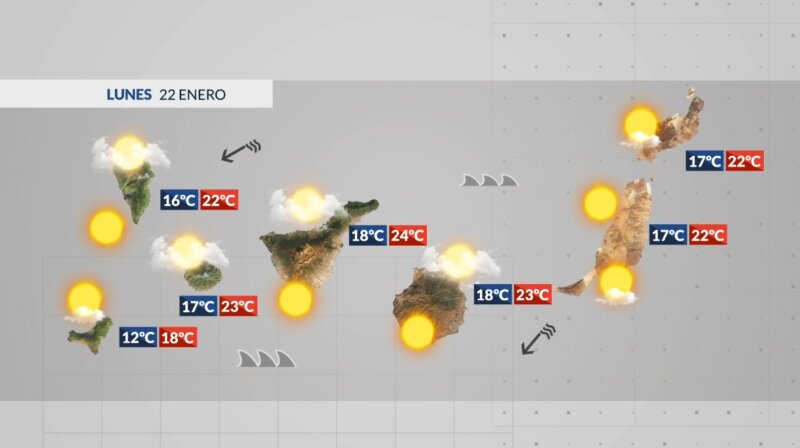 Comenzaremos la semana igual que la terminamos; el viento alisio continuará soplando moderado, salvo en las islas más occidentales, donde habrá intervalos fuertes