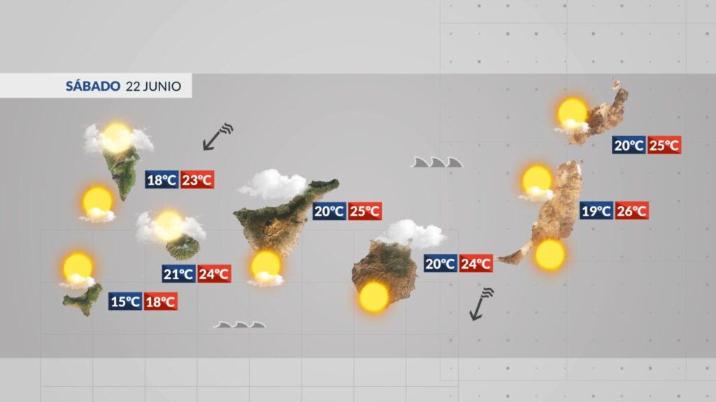 Este sábado las nubes bajas nos acompañarán gran parte de la jornada por el Norte y Nordeste de las islas, incluso, nos podrán dejar algunas lloviznas en medianías, más probables durante la primera mitad del día. En el resto de zonas predominarán los cielos poco nubosos o despejados.
