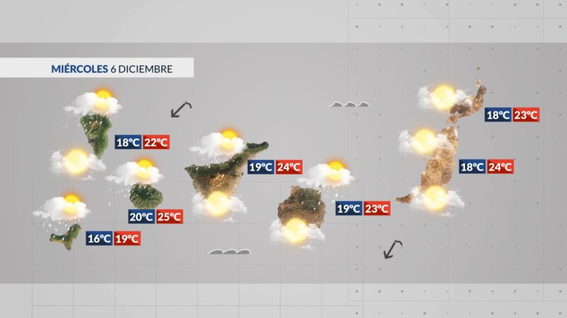 El resto de día estará marcado por la presencia de nubes medias y altas que cubrirán el cielo en todo el archipiélago, también permanecerán el jueves aunque irán a menos. Recuperaremos los alisios y las temperaturas desde este jueves hasta el domingo podrían ir en ligero ascenso.