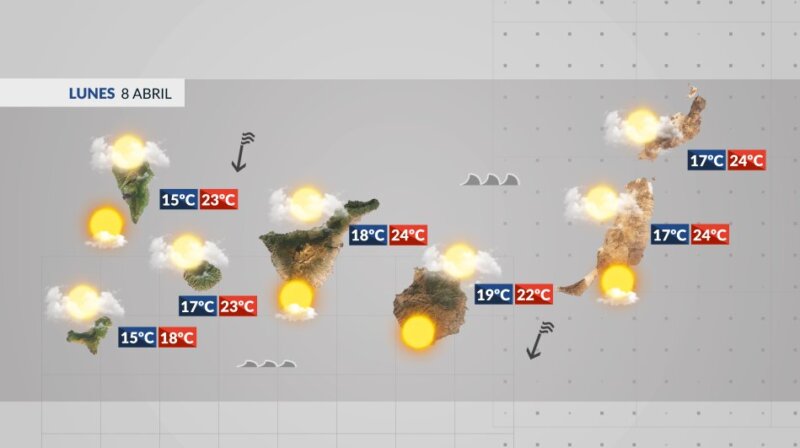 Este lunes el viento cobrará intensidad. En las islas orientales será donde más se notará, sobre todo en zonas del interior. Viento del Norte-Nordeste moderado con intervalos fuertes, que será más importante a últimas horas. En altas cumbres también será moderado con intervalos fuertes del Norte.