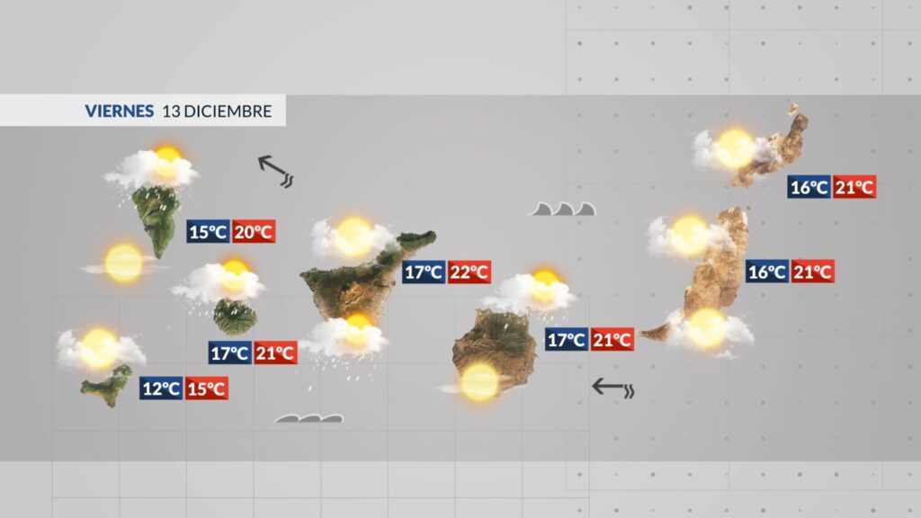 El viento soplará flojo del Nordeste a primeras horas, girando al Sureste flojo por la mañana. En cumbres será flojo del Suroeste. En el Teide, Suroeste moderado. En horas centrales se esperan rachas muy fuertes en cumbres de La Palma y Tenerife. Y en el mar, fuerte marejada en costas del norte, oleaje de fondo del norte, noroeste por la tarde 1,5-2m. Marejadilla en el sur, con olas >0,5m. Atención al viento este fin de semana, ganará fuerza y las rachas podrán superar los 90 km/h.
