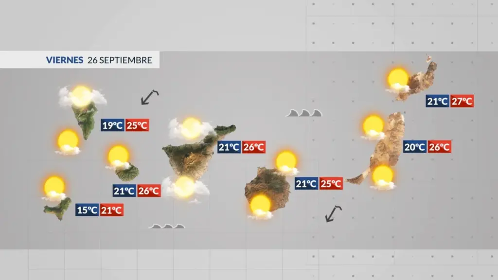 Las temperaturas podrían subir algún grado en zonas de medianías de las islas con mayor altura y el viento soplará de flojo a moderado del nordeste, recuperaremos los alisios.