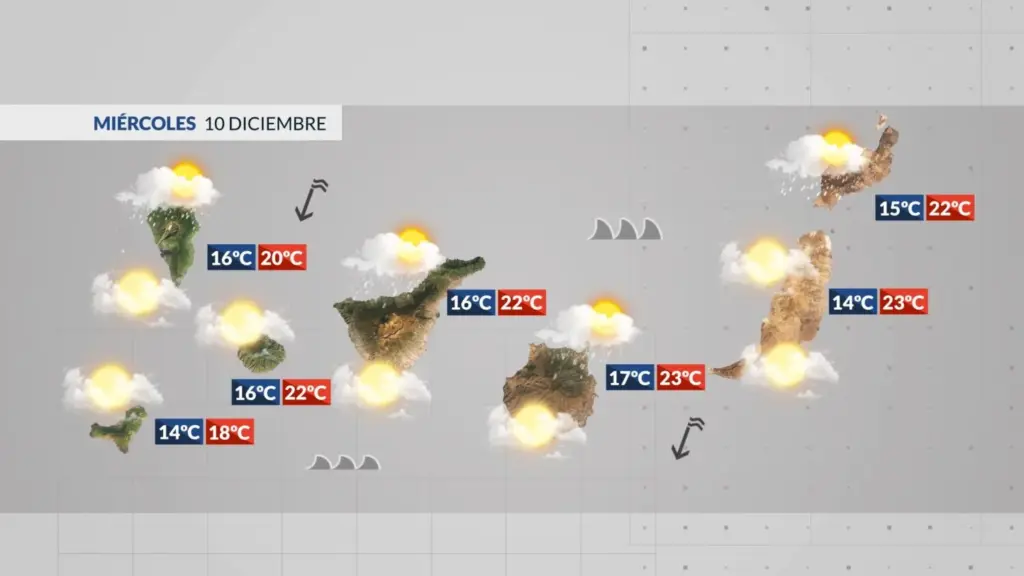 Gran Canaria: Las nubes irán llegando a lo largo de la mañana al norte, en principio el sur estará despejado. En las medianías dejará chubascos intermitentes que se irán rápidamente.