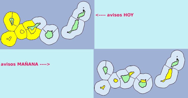 La Agencia Estatal de Meteorología ha activado avisos de nivel amarillo por viento que afectarán principalmente este lunes a las islas occidentales (Tenerife, La Palma, El Hierro y La Gomera), con mayor incidencia en las vertientes sureste y noroeste de las islas y rechas que localmente pueden alcanzar los 70 y 80 Km/h.