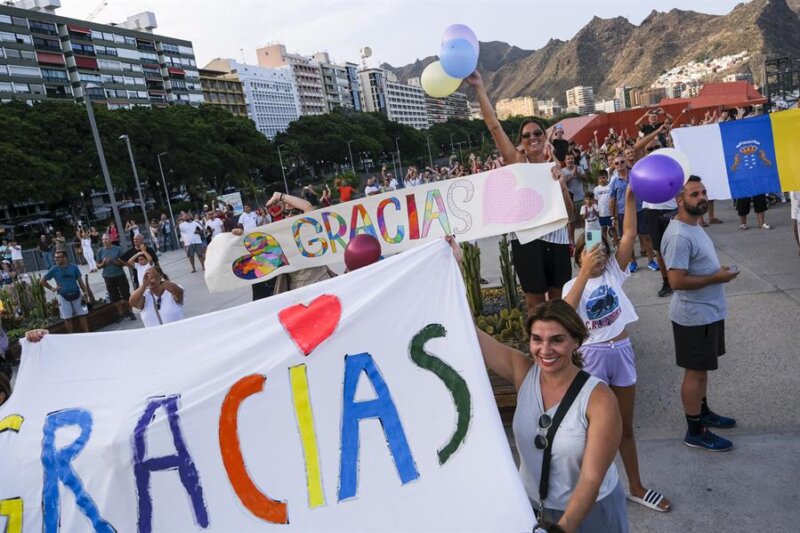 Cientos de personas se dieron cita este miércoles en el puerto de Santa Cruz de Tenerife para agradecer a los equipos de extinción de incendios su labor en el incendio forestal que afecta a la isla de Tenerife desde hace más de una semana.