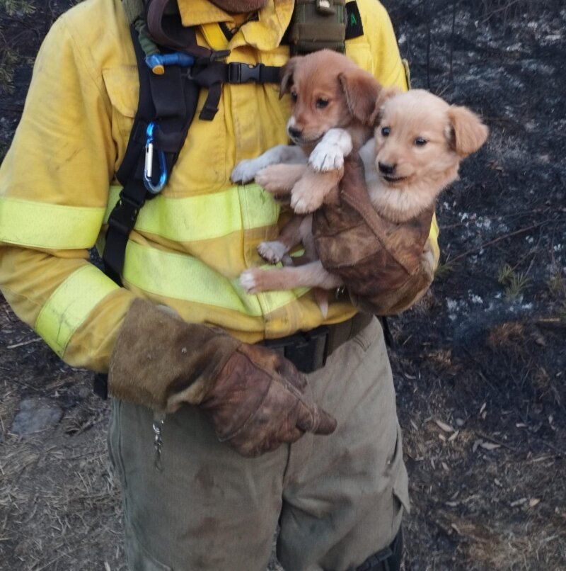 Personal de la Brifor rescataron dos cachorros en la zona afectada por el incendio de Tenerife en Aguamansa, La Orotava. Los cachorros ya están ubicados en una casa de acogida y esperan tener un hogar. Están algo débiles, pero se recuperan bien.