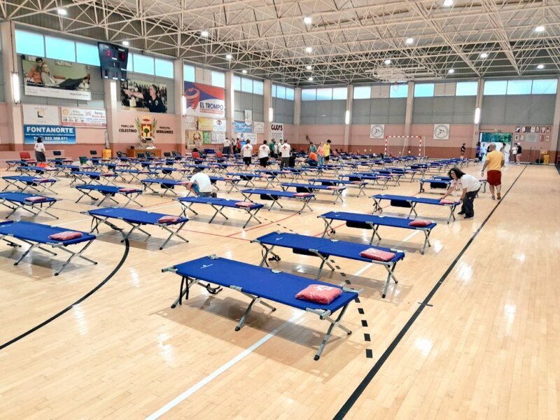 Cruz Roja está procediendo al montaje de un nuevo albergue provisional en el Pabellón de Deportes La Perdoma, en La Orotava, con capacidad para acoger a 100 personas.