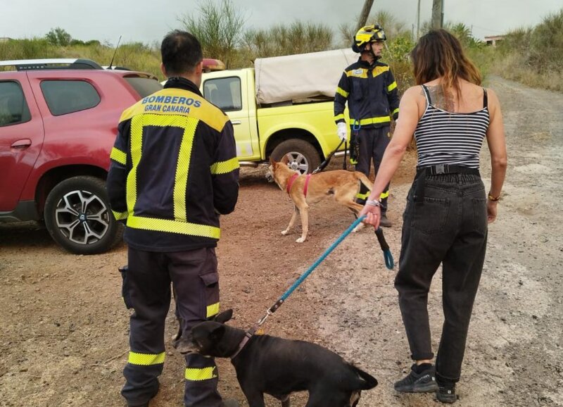 Además de las labores sobre el incendio, los Bomberos de Gran Canaria están realizando actuaciones con los vecinos y vecinas de las zonas evacuadas para dar de comer a sus animales, revisar sus viviendas y rescatar aquellos animales que están en mayor riesgo.