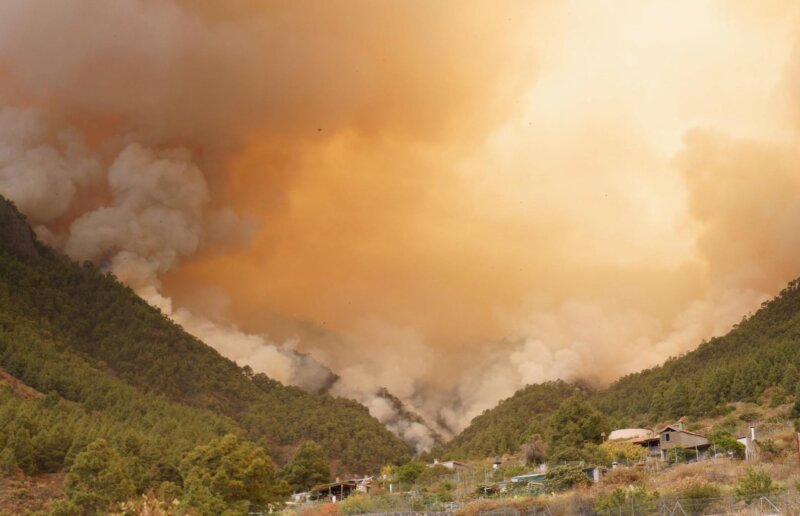 El Gobierno de Canarias recuerda que el humo de los incendios forestales está compuesto por una mezcla de gases y partículas pequeñas que se emiten por la combustión de la vegetación y otros materiales.