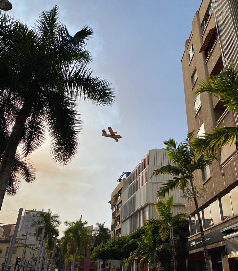 El primero de los tres aviones anfibios del Ejército del Aire ya se encuentra en Tenerife participando en las tareas de extinción del incendio forestal, junto al resto de medios aéros y terrestres. Mañana se espera que se sumen a esas labores de extinción otros dos aviones.