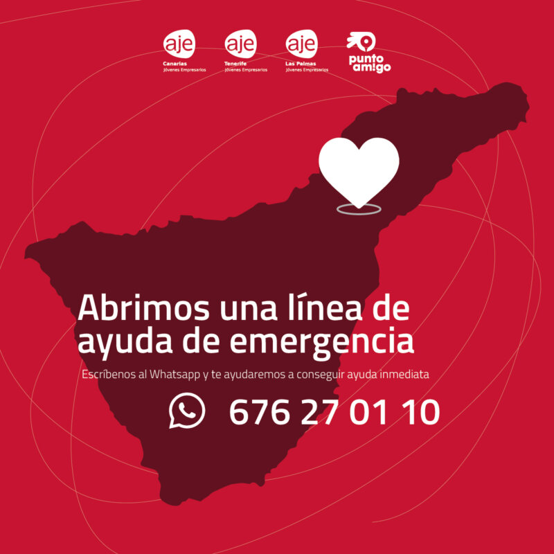La Asociación de Jóvenes Empresarios de Canarias ha abierto una línea de ayuda de emergencia para ofrecer ayuda inmediata a las personas afectadas por el incendio forestal. Se podrá solicitar la ayuda tanto por WhatsApp como por llamada.