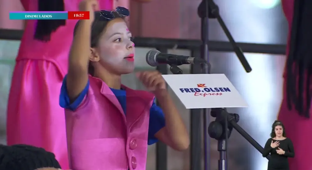 ‘Los Disimulados‘ han sido los encargados del cierre de la primera fase del concurso de murgas infantiles del Carnaval de Santa Cruz de Tenerife. Con un total de 33 componentes, han vuelto al subirse al escenario, pues no se presentaron a este concurso en el 2025.