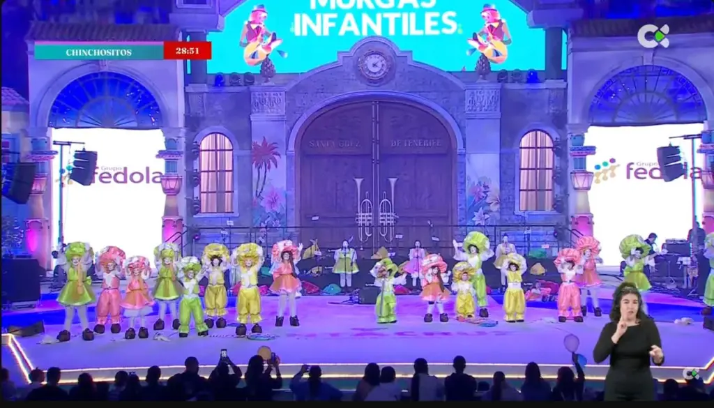 La primera fase de las murgas infantiles del carnaval de Santa Cruz de Tenerife, el primer concurso que se celebra en esta edición de los Ritmos Latinos podrá verse en directo en RTVC.
