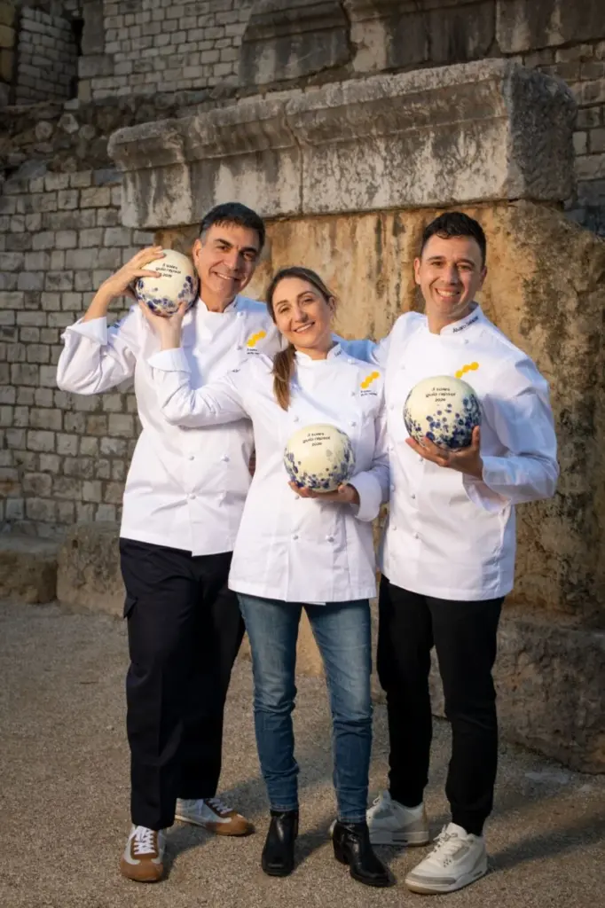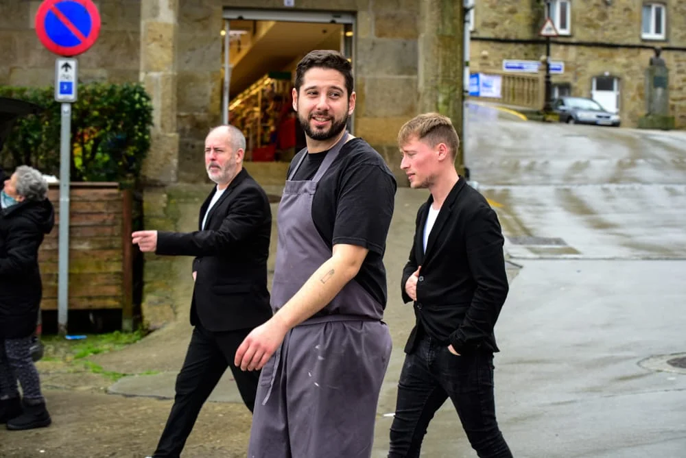 De izquierda a derecha, plato de Casa Terra, pescado fresco llevado al local por el equipo e imagen de su chef, Brais Pichel.La chef Lucía Freitas y miembros de cocina de A Tafona, tras obtener los Soles de la Guía Repsol.