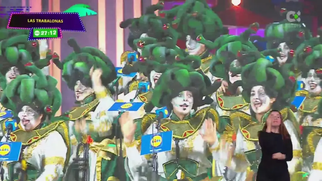 Por su parte, la primera representación femenina llegó con la garra de Las Trabalonas. Desde el barrio de Triana, estas 58 murgueras lucieron una estética guerrera para defender al pueblo «con mirada afilada». Bajo la presidencia de Dafne Isabel Regalado Sosa, el grupo apostó por letras de profunda carga social con sus temas El problema no siempre viene de fuera, no todo lo que suena es murga y Dios nos hizo iguales; el hombre no.