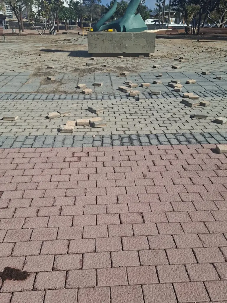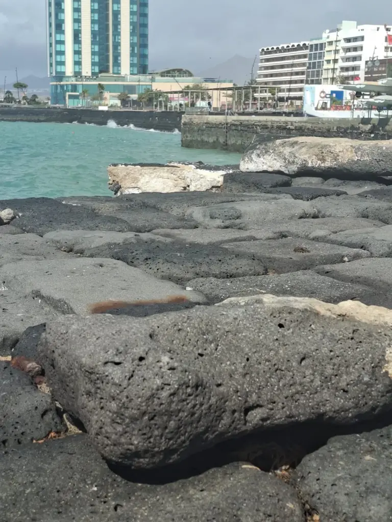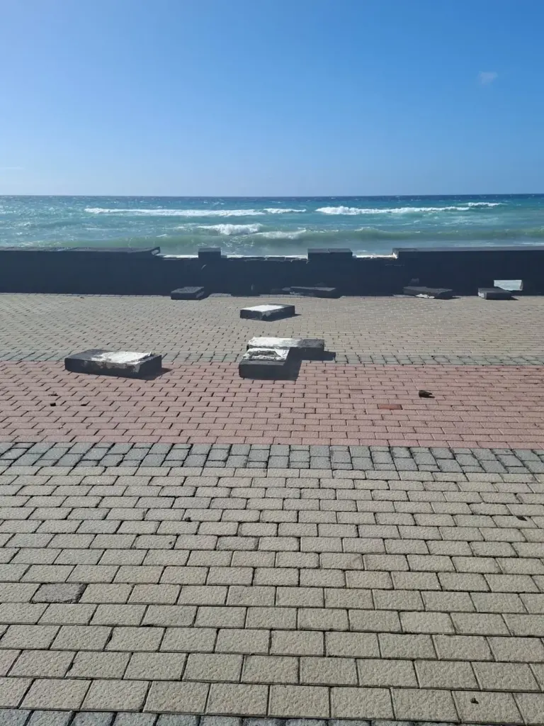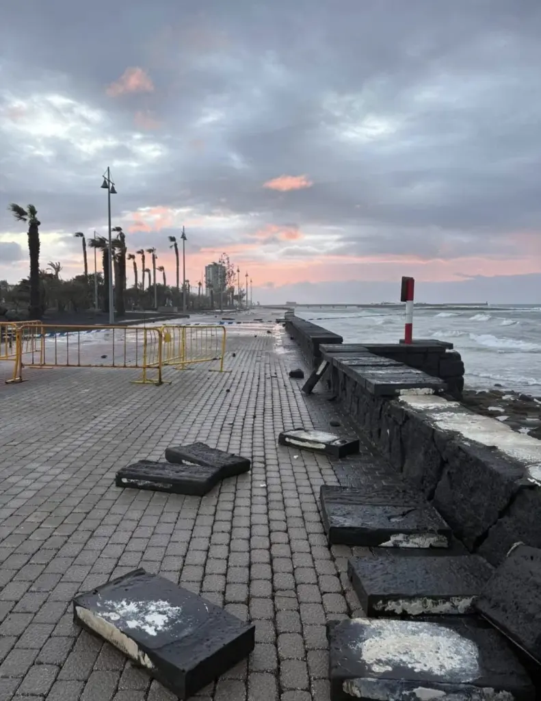En Lanzarote, la zona más afectada por la borrasca ha sido la de costa, pues el fuerte oleaje ha levantado las baldosas y adoquines del paseo.