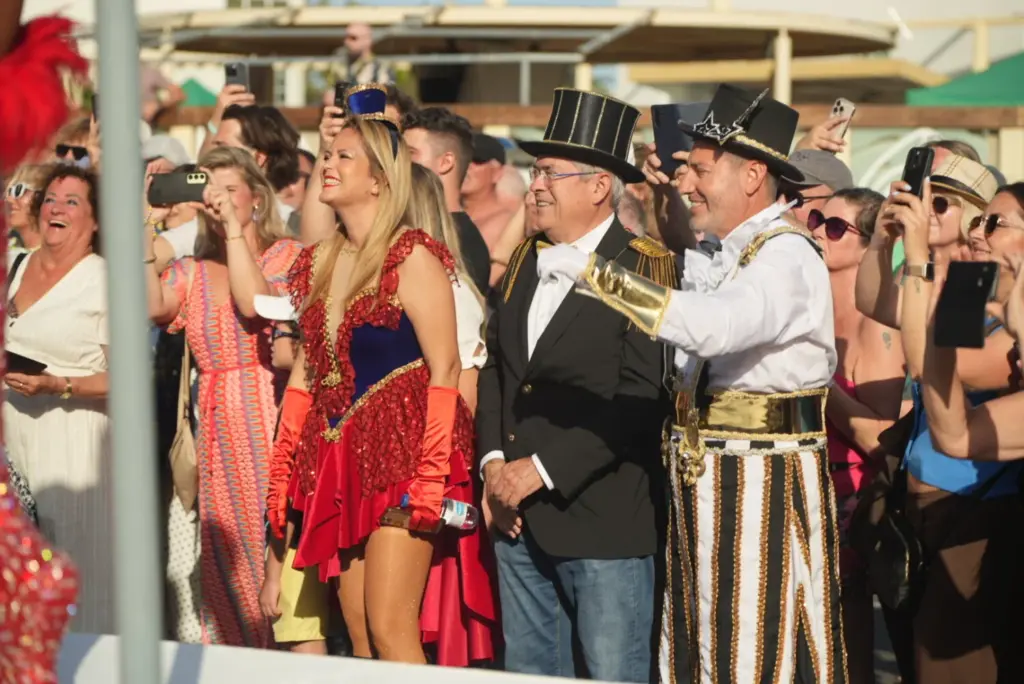 El desfile contó con una apertura de lujo que protagonizaron grupos como la Comparsa Cumbacheros, la Batucada Aborigen y la murga Las Crazy Trotas. Tras el ritmo de la Comparsa Cayo Mambí y la Batucada Piratas del Caribe, el público centró su mirada en el brillo de la corte real, donde destacaron la Reina del Carnaval, Estrella Jiménez, la Gran Dama, Inmaculada Ojeda, y el Drag Ávalon.