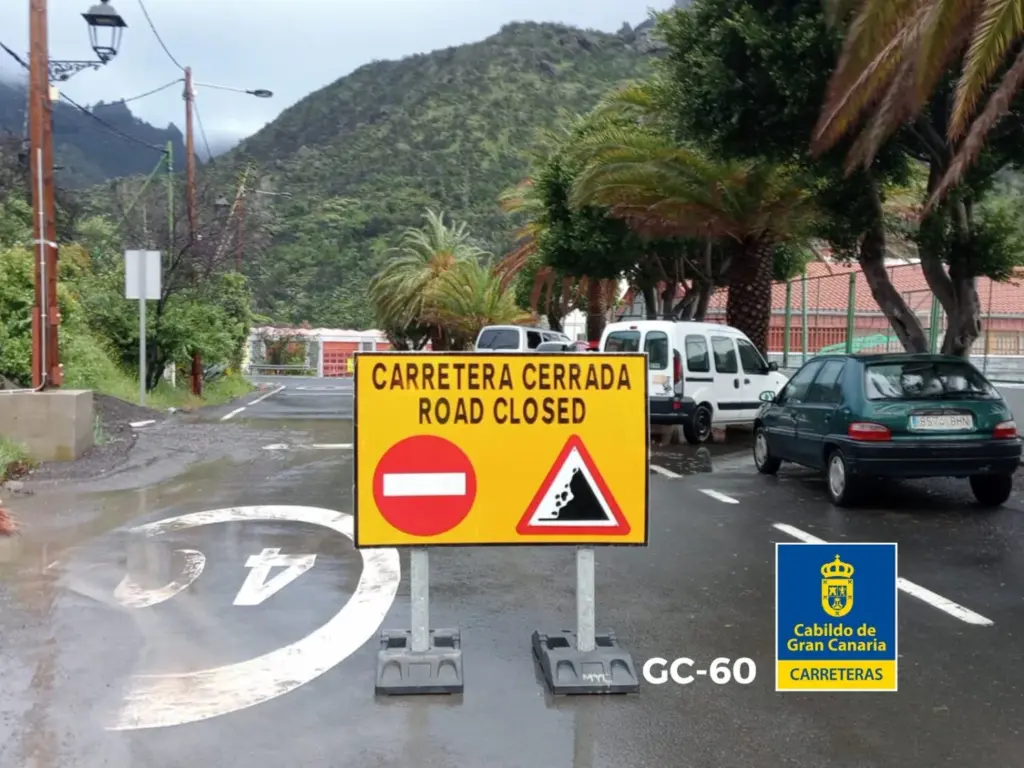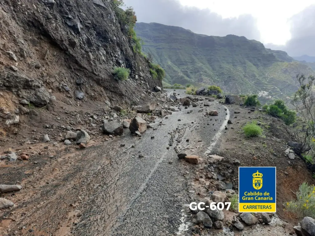 Varias vías de esta isla se mantienen cerradas por desprendimientos y otras incidencias ocasionadas por la Borrasca Therese. El Cabildo de Gran Canaria afirmo que los trabajos se retomarán a primera hora de este domingo para recuperar la normalidad en estas carreteras afectadas.