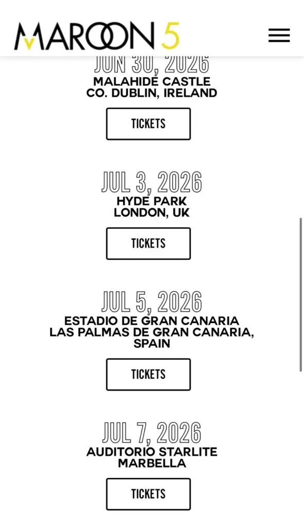 El concierto se llevará a cabo en uno de los escenarios más emblemáticos de la ciudad, el estadio de Gran Canaria. La banda Maroon 5 es mundialmente conocida por sus grandes éxitos, entre ellos Payphone, This Love, Maps, She Will Be Loved y Memories.