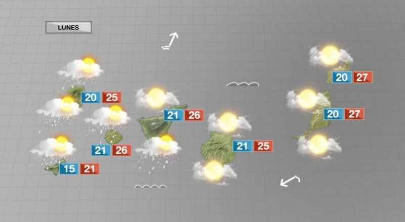 También tendremos algunas nubes en la isla de Tenerife, pero será a partir de mediodía cuando habrá cielos nubosos y podrían caer precipitaciones especialmente en vertientes este y norte. Temperaturas similares a las de este domingo. El Viento tenderá a componente sur moderado durante la mañana, más intenso en medianías. En cumbres centrales, oeste moderado que aumentará a suroeste fuerte por la tarde, con probables rachas de muy fuerte al final del día. Temp máximas 26º