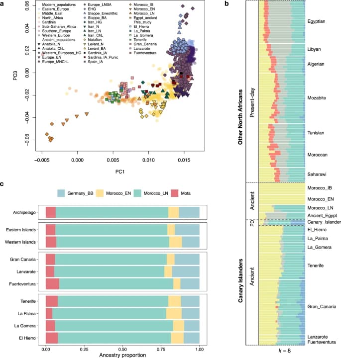 Entre ellos, el publicado el pasado mes de agosto en la revista Nature, (The genomic history of the indigenous people of the Canary Islands ), en el que participó Rosa Fregle, doctora en Biología, profesora del Área de Genética en la Universidad de La Laguna y especialista en ADN de poblaciones antiguas, junto con Javier Serrano, autor principal de dicho Estudio.