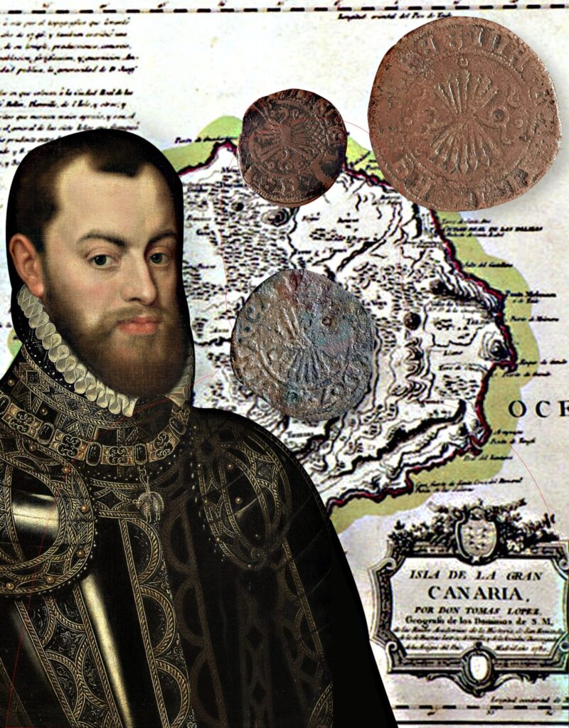 Medina argumenta que las cuatro monedas que hay en el Museo y Parque Arqueológico de la Cueva Pintada de Gáldar no son piezas falsas de medio real como se creía. Son en realidad ejemplares de la primera moneda acuñada para todo el archipiélago canario.
