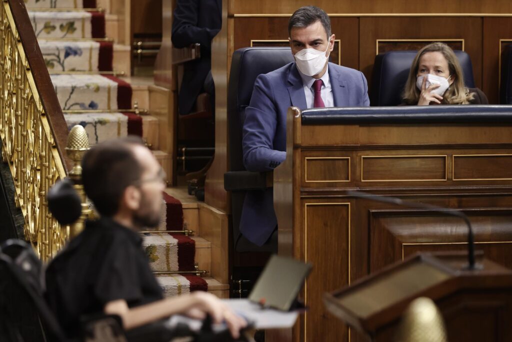 Echenique ha insistido en defender la postura de Unidas Podemos, socio de Gobierno que no ha aplaudido al presidente, como ha hecho gran parte de la cámara, cuando ha anunciado que España enviará armas a Ucrania directamente.