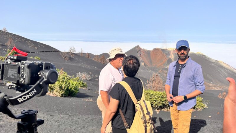 Stavros Meletlidis, vulcanólogo del Instituto Geográfico Nacional de España, con quien iremos a Puerto Naos, la localidad fantasma de La Palma que continua deshabitada debido a las emisiones tóxicas que aún hoy persisten en determinadas zonas del territorio y que impide el regreso de sus propietarios; navegaremos con Eugenio Fraile, investigador del Instituto Español de Oceanografía, para conocer el nuevo litoral y las nuevas playas creadas por la lava al precipitarse al mar, o a Carmen Romero, geógrafa experta en vulcanismo histórico en Canarias.