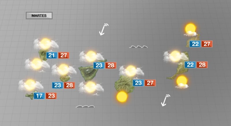Lanzarote: Nubes de norte a sur que se irán disipando en la segunda mitad del día. Volverán a última hora. Temperaturas sin grandes cambios. Viento flojo a moderado.
