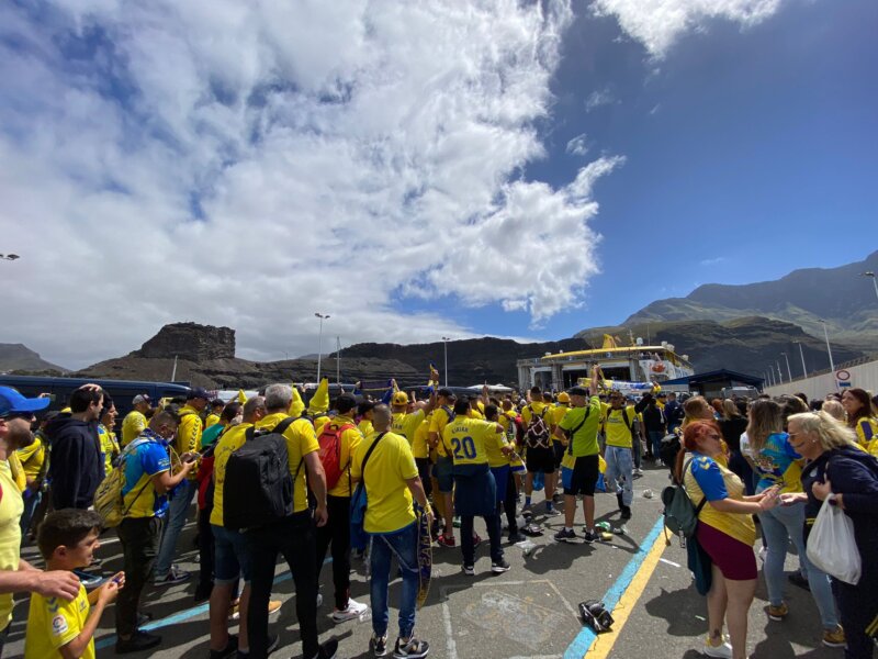 El Heliodoro Rodríguez López registrará una gran entrada, la mejor de la temporada. Además de los seguidores blanquiazules, han viajado 690 desde Gran Canaria. Buena parte de ellos lo hicieron por barco y ya están en la capital tinerfeña con ganas de arropar al conjunto de García Pimienta.