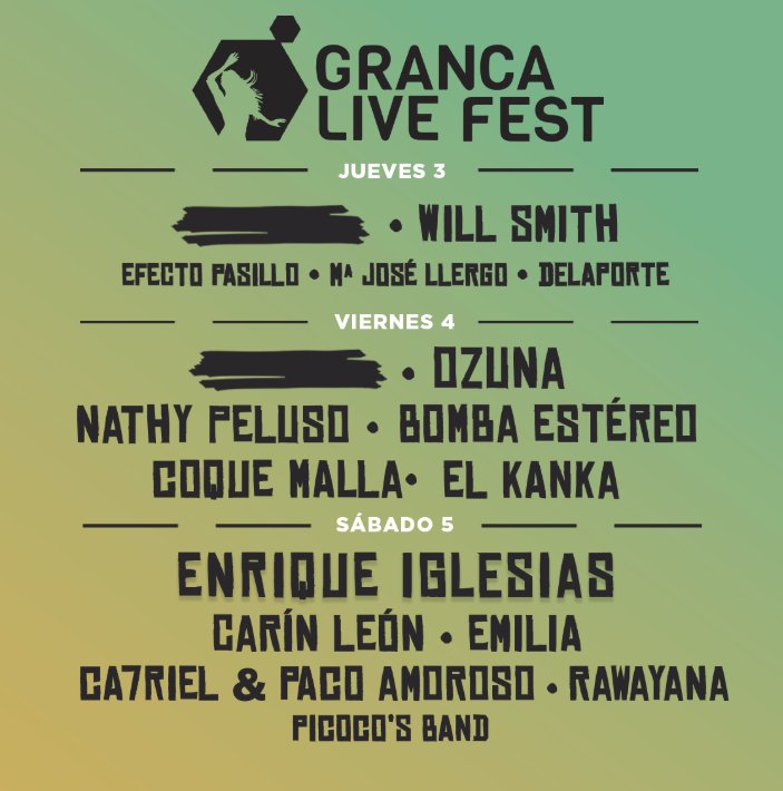La próxima edición del Granca Live Fest, el festival que convierte a Gran Canaria en epicentro de la música internacional en 2024, acaba de presentar su cartel para 2025 con nombres que prometen marcar la agenda estival de toda Europa. Enrique Iglesias, Ozuna y Will Smith lideran una programación que volverá a reunir a decenas de miles de asistentes en el Estadio de Gran Canaria durante el primer fin de semana de julio del próximo año.