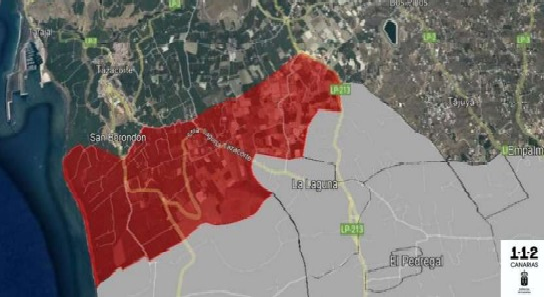 Los barrios evacuados son Las Martelas, en el municipio de Los Llanos de Aridane, y Marina Alta, Marina Baja, La Condesa y Cuesta Zapata en el municipio de Tazacorte; delimitados por la zona siguiente: Desde la LP-213 en el cruce con Camino Nicolás Brito Pais, dirección norte, hasta el cruce con Camino Martelas de Abajo. En línea diseminada, dirección suroeste, hasta el cruce de la Carretera La Laguna-Tazacorte (LP-215) con Cuesta Zapata.