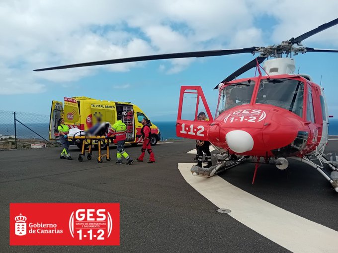 Una senderista de 65 años ha sido evacuada por un helicóptero del Grupo de Emergencias y Seguridad, GES, al sufrir una fractura en una pierna en La Gomera. La afectada fue trasladada en una ambulancia de soporte vital básico del SUC hasta el Hospital Nuestra Señora de Guadalupe.