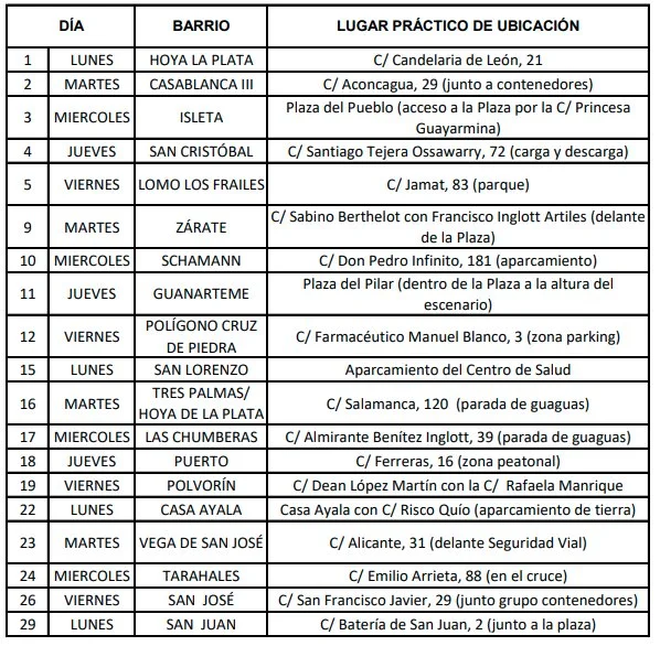 La programación detallada, con la ubicación exacta en cada barrio, puede consultarse en la web municipal a través del enlace disponible en https://www.laspalmasgc.es/es/areas-tematicas/limpieza-y-reciclaje/el-servicio-de-limpieza/campanas-y-actuaciones/ o mediante el código QR instalado en el propio contenedor. Desde su implantación en diciembre de 2023, este servicio ha permitido retirar 60.700 kilos de residuos por parte de los vecinos y vecinas.