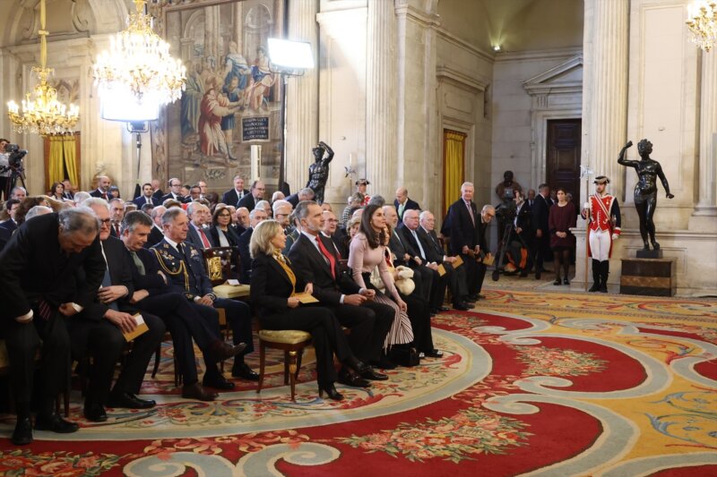 Para reforzar la solemnidad de la iniciativa, el acto se ha celebrado en el Salón de Columnas con la presencia de la reina Letizia, la vicepresidenta primera del Gobierno y ministra de Asuntos Económicos, Nadia Calviño, y la directora de la RAH, Carmen Iglesias.