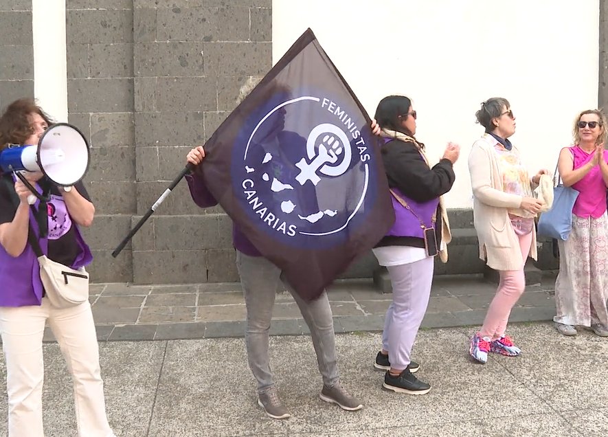 El colectivo Feministas Canarias se concentra en el centro de La Laguna, en Tenerife, para rechazar la Ley Trans y pedir al Tribunal Constitucional la declare antidemocrática. Denuncian que es antifeminista porque «oculta la violencia contra la mujeres y provoca que el deporte femenino deje de ser justo».