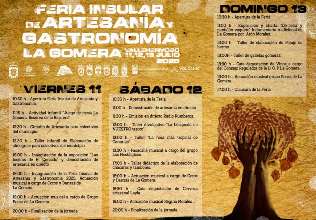 El municipio de Vallehermoso acoge desde este viernes 11 de julio y hasta el domingo 13 la Feria Insular de Artesanía y Gastronomía de La Gomera, una cita incluida en el programa de las Fiestas Lustrales que ha congregado a una amplia representación del sector artesanal y gastronómico de Canarias.