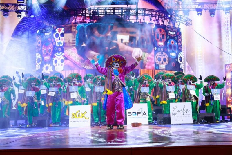 El turno de la murga Afilarmónica Melindrosos llegó pasado el hemisferio de la noche, en sexto lugar. Fundada en 1995, los 41 componentes lucieron la alegoría ‘Esta murga huele a muerto, na más manito’.