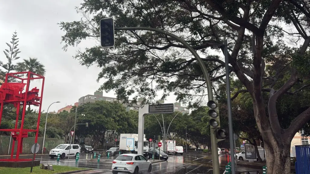 La fuerte lluvia que está cayendo en el área metropolitana ya está dejando zonas anegadas por la cantidad de agua que ha caído en un espacio corto de tiempo. Asimismo, los semáforos de Las Ramblas de Santa Cruz de Tenerife han dejado de funcionar. Agentes de la Policía Local se acercan a la zona para regular el tráfico.