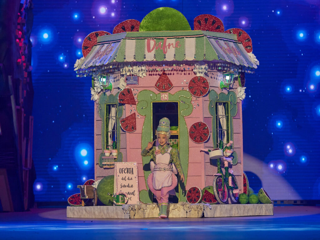 La aparición de las aspirantes a Reina Infantil de este estuvo dividida en tres bloques, en el que las actuaciones de la comparsa infantil Tropicana y Joroperos infantil, los tres grupos coreográficos de la edición, la murga infantil Mamelones como ganadora del primer premio de Interpretación y una actuación conjunta de los grupos coreográficos marcó los descansos entre bloques.