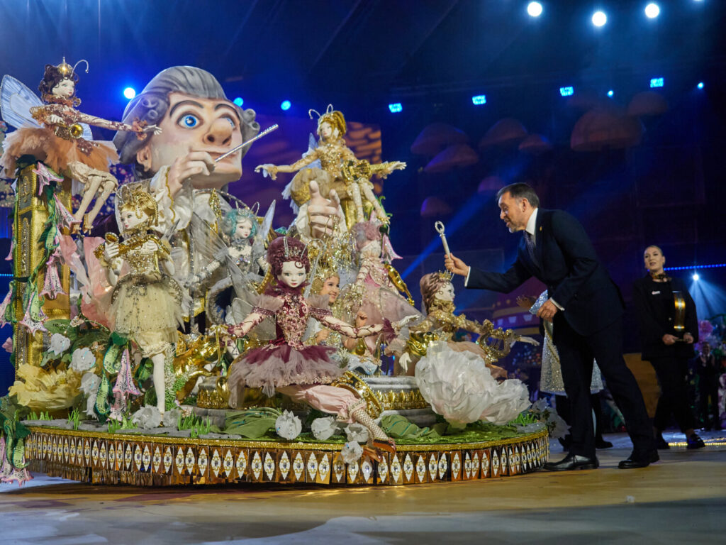 Camila Dorta Díaz con la fantasía “Tritsch ¿tocamos? O Trastsch ¿croamos?”, diseñada por Santi Castro en representación de Icadepro S.L. es la nueva Reina Infantil del Carnaval de Santa Cruz de Tenerife.