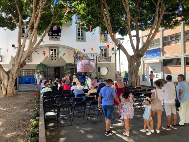 Exterior del Ayuntamiento de Firgas en el que hay mucha expectación entre vecinos para el pleno de constitución del ayuntamiento / RTVC / Yeray Sosa