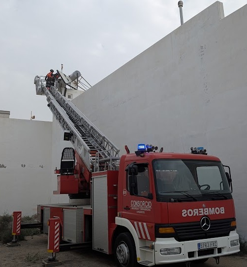 Actuación de Bomberos de Tenerife para retirar elementos sueltos de fachadas como consecuencia del viento / Bomberos de Tenerife / Moisés Pérez